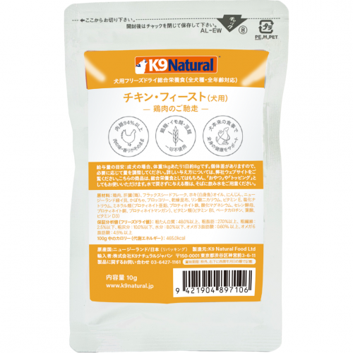 チキン・フィースト 犬用 10g【K9】K9 Natural フリーズドライ チキン ドッグフード トッピング 犬用 ニュージーランド産[K]