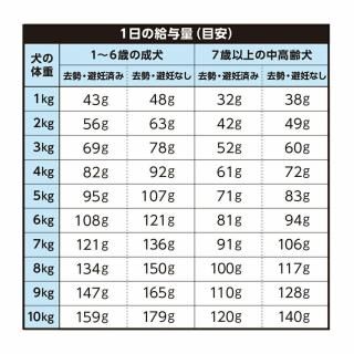 1日に与える量は、犬種、年齢、運動量、季節、個体によって変わります。