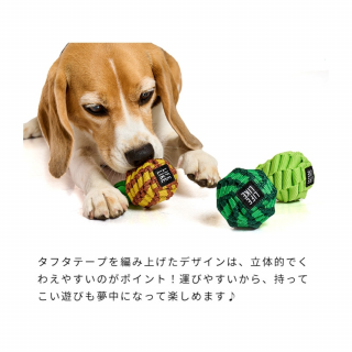 タフタテープを編み上げたデザインは、立体的でくわえやすいのがポイント!運びやすいから、持ってこい遊びも夢中になって楽しめます♪