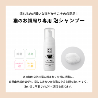 濡れるのが嫌いな猫だからこその必需品!きめ細かな泡で猫の顔まわりを常に清潔に