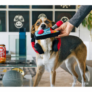 ベロア製で肌触りがよく、ワンちゃんの興味を惹きつける音も鳴ります。形や触り心地だけではなく、作り方にもこだわっており、子供用品と同等の品質基準で生産しています。少しでも丈夫な作りにするために、生地は2枚重ねにし、縫い目もダブルステッチ(2度縫い)を手作業でしています。